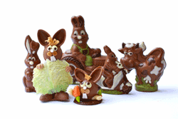 Verschenken auch Sie zu Ostern liebevoll handgemachte Schokofiguren aus Schweizer Premium Kuvertüre oder unsere feinen Pralinen mit erfrischenden Frühjahrsfüllungen (zum Beispiel Erdbeer, Limette, Hugo, Sekt Aperol, ...)